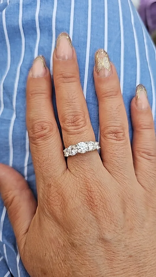 Ignite your style with a fire and brilliance that will not go unnoticed. Presenting our breathtaking 3.60 Carat Total Weight five-stone moissanite ring, designed to capture hearts and turn heads.
